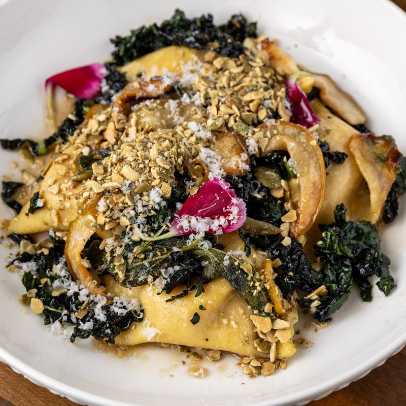 carrot purée, kale, turnips, parsnips, pepitas, pink peppercorn, pickled cauliflower, mushrooms