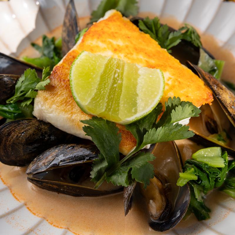 taro root purée, lobster hollandaise, Coldco farm roots slaw