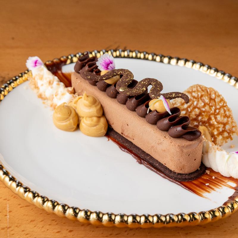 caramel pastry cream, cocoa hazelnut tuile, macaron